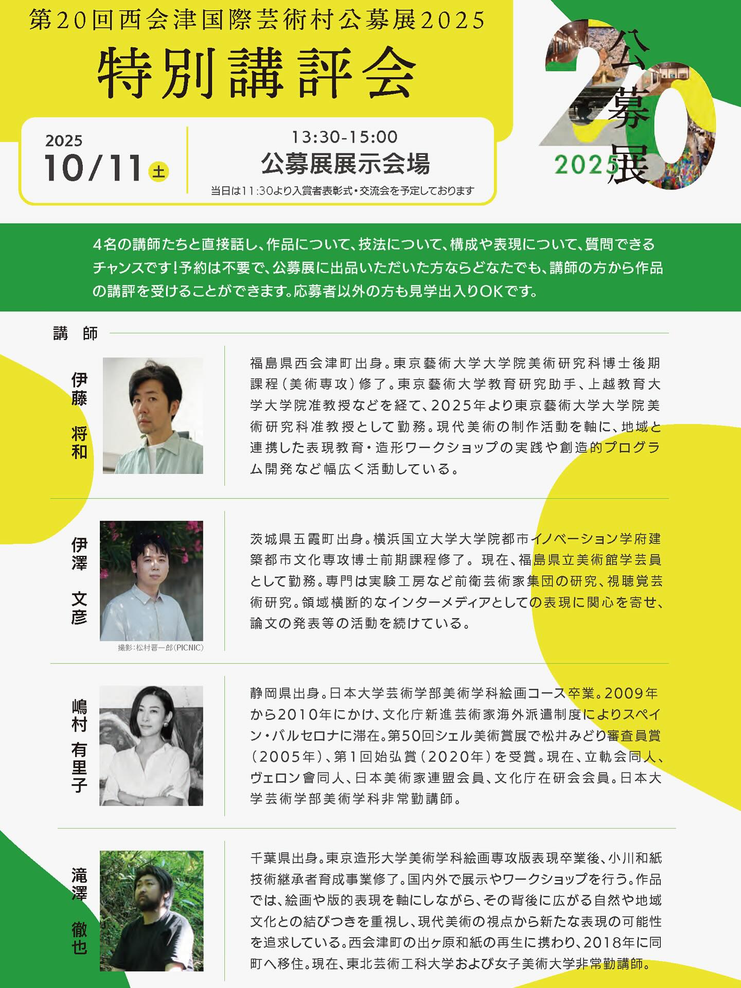 4名の講師を迎え、出品者ならどなたでも作品について表現について講師に直接質問していただけます!